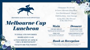 Tickets on sale now to our Melbourne Cup Luncheon! Tuesday 4th NovemberDoors Open 11amLunch Served at 12pm in Circa 20 Restaurant - Champagne On Arrival- 2-Course Alternate Drop Menu- Live Entertainment- Sweeps- TAB Facilities- Live Coverage- Lucky Door, Best Dressed & Best Hat Prizes Tickets $60. Call 4773 8000 to book. Full payment required at time of booking. MENUSet alternate drop menu. Please advise staff of any dietary requirements at time of booking. MAIN Chicken…